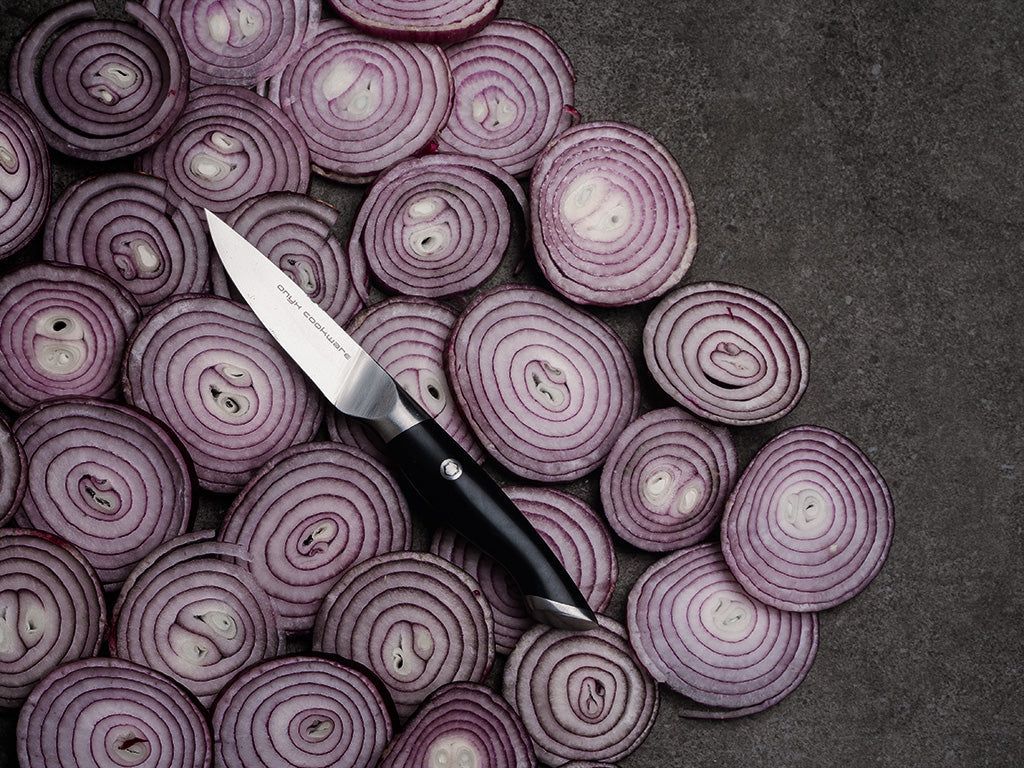 Noen ganger er en større kniv, som kokkekniven eller nyttekniven for stor for å gjøre delikate jobber med presisjon. Det er her ONYX COOKWARE™ ROTKNIV kommer til nytte - en lett kniv du kan holde i hånden kan utgjøre hele forskjellen.