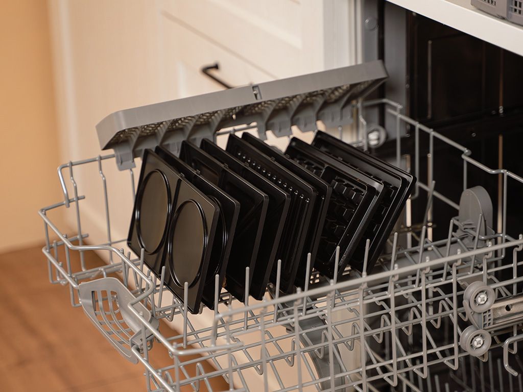 ONYX COOKWARE™ SANDWICHMAKER står stødig på sklisikre føtter mens du lager mat. Når du er ferdig, kan den settes på høykant og ryddes bort - perfekt for små kjøkken. Platene klikkes av på få sekunder og tåler oppvaskmaskin. Foretrekker du å vaske for hånd, slipper selv de mest gjenstridige restene lett takket være det keramiske belegget. Fra matlaging til rengjøring - ONYX COOKWARE™ SANDWICHMAKER gjør hverdagen enklere.