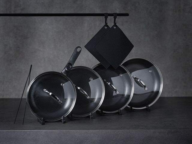 De patenterte ONYX COOKWARE™ hybrid non-stick grytene og stekepannene er enestående i verden av kjøkkenutstyr. Hvis du spør oss, er det de beste grytene og stekepannene du kan få. Punktum.