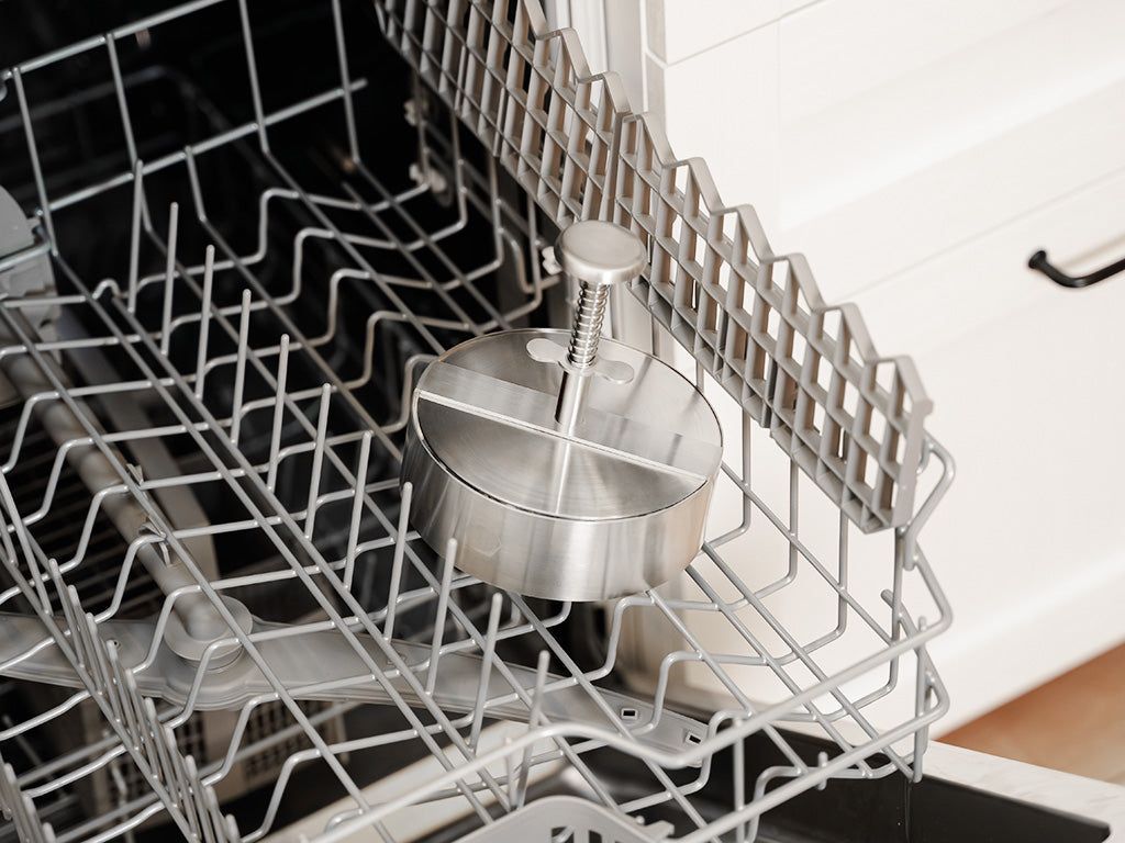 ONYX COOKWARE™ BURGERPRESSE leverer ikke bare topp ytelse i formingen av burgere til perfeksjon, men gjør også rengjøringen til en lek, takket være dens oppvaskmaskinsikre design. Si farvel til bryet med håndvask og skrubbing etter en deilig burgerlagingssesjon. Vår BURGERPRESSE er oppvaskmaskinsikker, noe som forenkler etter-matlagingen og sparer deg verdifull tid på kjøkkenet. Nyt lettheten av å skape perfekt formete burgere, og når du er ferdig, nyt lettheten av å rydde opp – det er alt en del av ONYX COOKWARE™ opplevelsen, der vi prioriterer din bekvemmelighet i hvert trinn. Løft ditt burgerspill med letthet og enkelhet i dag!