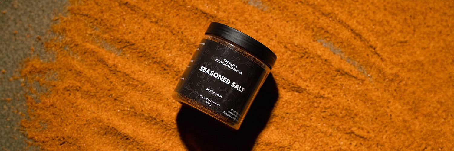 Vårt ONYX COOKWARE™ KRYDRET SALT er en kunstnerisk blanding, skapt for å forsterke smaken av rettene dine. Vårt krydrede salt er en symfoni av nøye utvalgte urter og krydder, skapt for å bringe rikdom og aroma til hver kreasjon du utforsker.