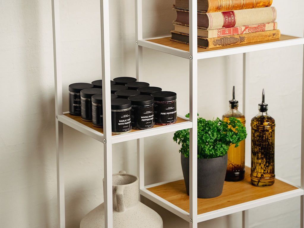 En symfoni av smaker venter i våre pepper- og saltblandinger, og lover å forvandle dine kulinariske kreasjoner til ekstraordinære mesterverk. Krydre rettene dine med vår mangfoldige ONYX COOKWARE™ PREMIUM BLANDINGER-kolleksjon, og begi deg ut på en reise med krydderutforskning!