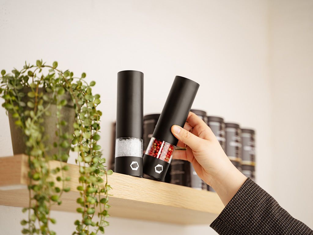 Introduksjon til vår nyeste oppgradering av vår allerede utmerkede ELEKTRISKE KVÆRN. ONYX COOKWARE™ ELEKTRISK KVÆRN – 40ML er en innovativ salt- og pepperkvern designet for maksimal krydring med minimal innsats. Vi inngår aldri kompromisser med noe her hos ONYX COOKWARE™, og vi klarte å skape en løsning som ville passe inn i ethvert kjøkken samtidig som den yter like godt som vår opprinnelige ELEKTRISKE KVÆRN. Vår oppgraderte versjon inneholder opptil 40 ml av ditt favorittsalt og -pepper og har en innebygd lysfunksjon, som sikrer at du til enhver tid kan se hvor krydderet lander! Med bare et trykk på en knapp gir denne elektriske kvernen ferskt salt og pepper til perfeksjon innen sekunder, noe som gjør krydringen av måltidene dine enklere og mer praktisk enn noensinne.