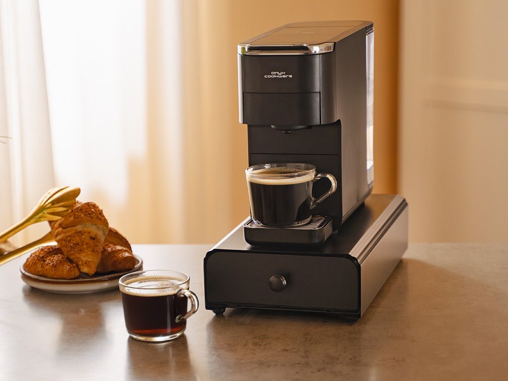Dette er det nøyaktige problemet vi ønsket å løse med ONYX COOKWARE™ OPPBEVARINGSSKUFF. Dette er mer enn bare lagring – det er en smartere måte å bruke plassen din på. Designet for å passe perfekt under eller ved siden av din kapselkaffemaskin eller smartkoker, forvandler det oversett plass til ren, funksjonell lagring. Utvendig er den kompakt og diskret. Innvendig har den plass til opptil 14 kapsler og inkluderer tre avtakbare bokser i midten til te, sukker eller andre daglige nødvendigheter.