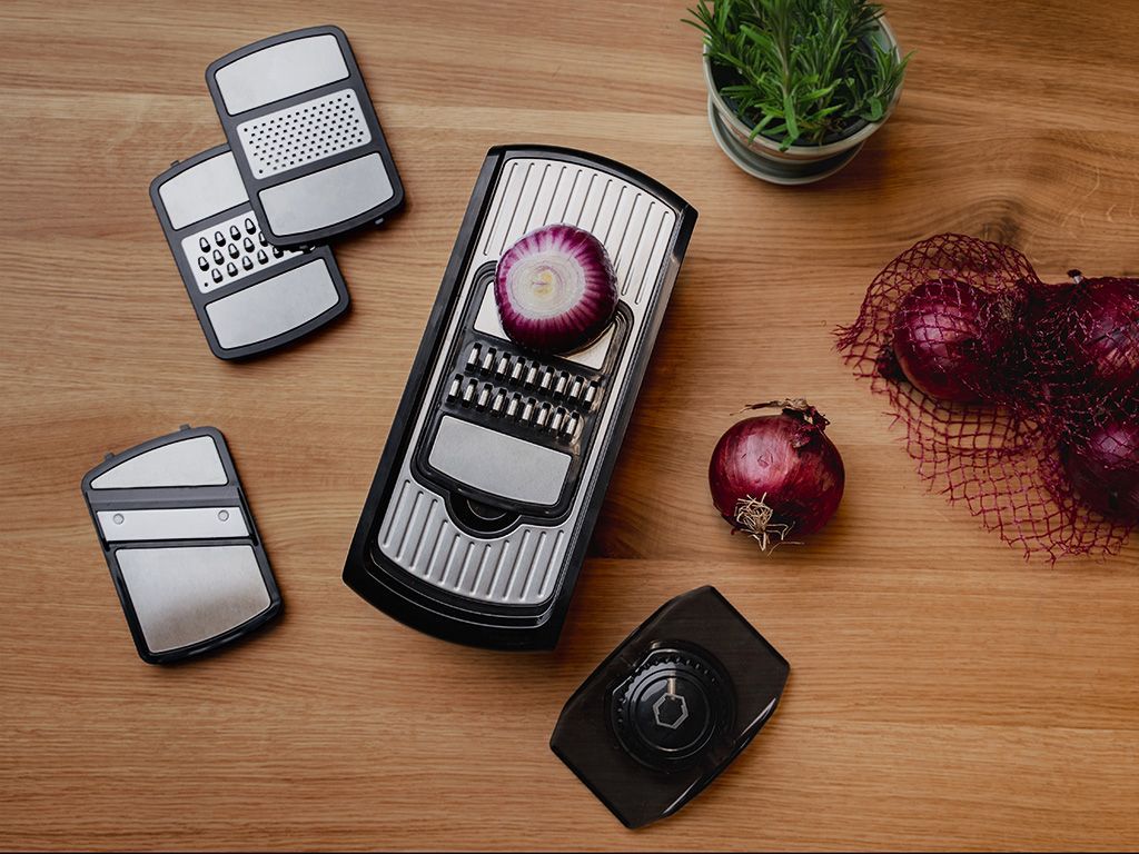 Gjør matlagingen enklere med denne allsidige mandolinjernet som gjør kutting, riving og julienne raskere og mer effektivt enn noensinne. Utstyrt med fire presisjonsblader gir den perfekte resultater – enten du kutter agurk til salaten, river ost til pasta eller lager julienne-gulrøtter til wok. Dette kjøkkenredskapet gir jevne og profesjonelle kutt hver gang – et must-have i ethvert kjøkken.
